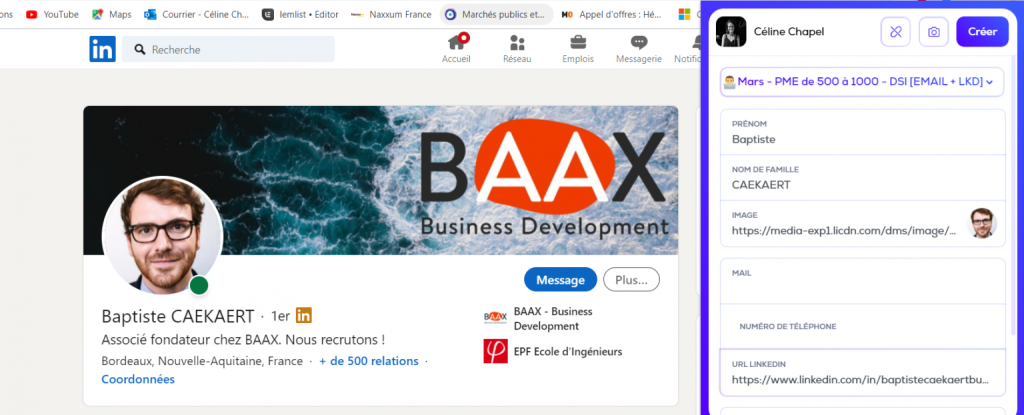 Une fois les URL importées, un logo LinkedIn apparaît sur chaque contact. Maintenant je suis sûr que ça va fonctionner.